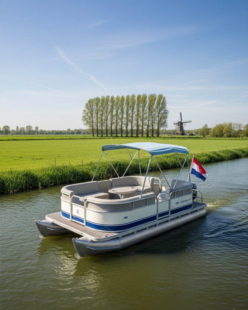 Een pontonboot bestaat uit minimaal twee aluminium drijvers met een vlakke vloer en stevig hekwerk, uit te breiden met talloze opties. Van een kaal casco voor zelfafbouw tot een volledig uitgeruste luxe uitvoering met banken, zondek en biminitop – alles is mogelijk.