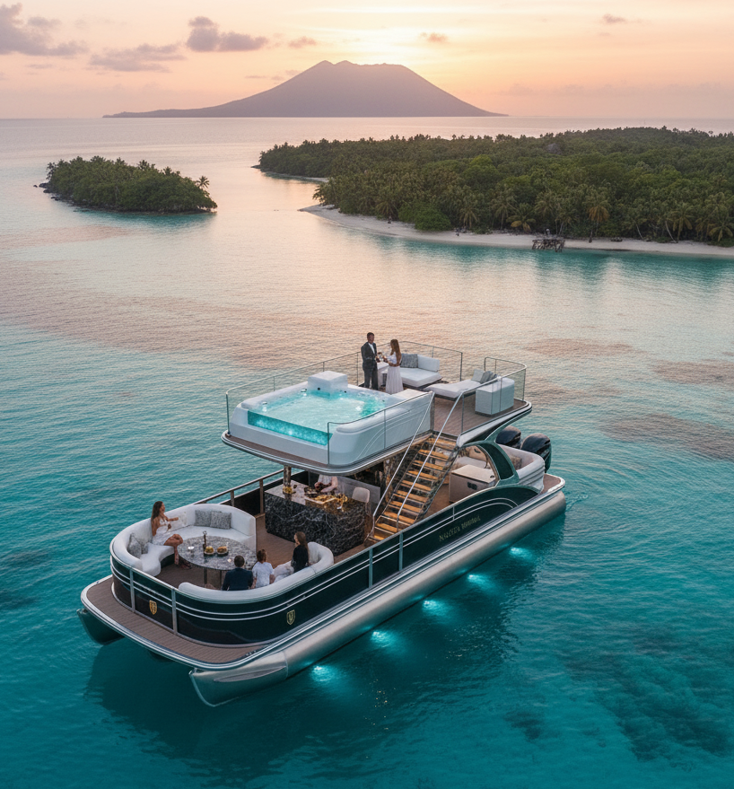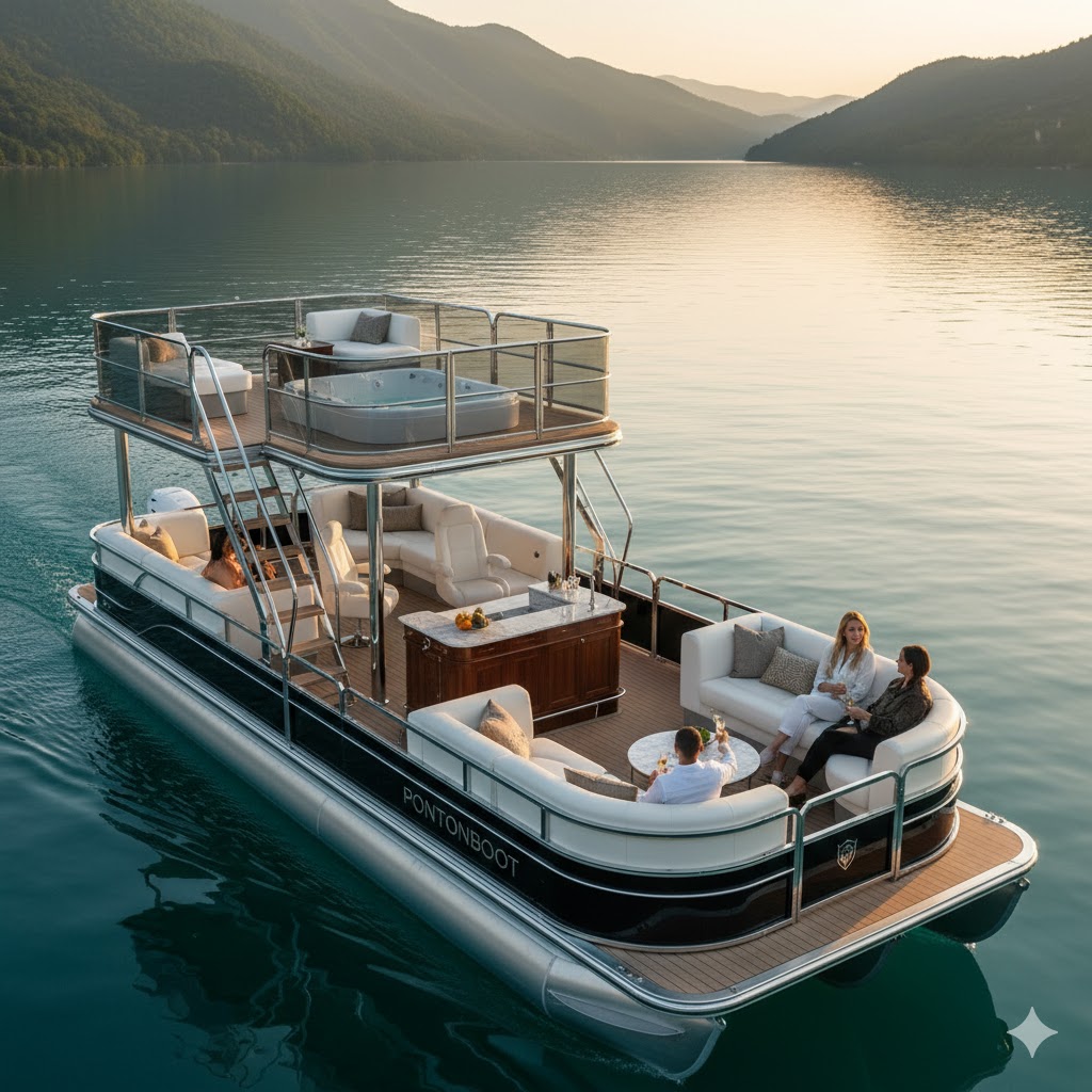 Pontonboot voegt met zijn luxe dek en schilderachtige omgeving een speciaal tintje toe aan elk feestje en zorgt voor een onvergetelijke viering op het water.